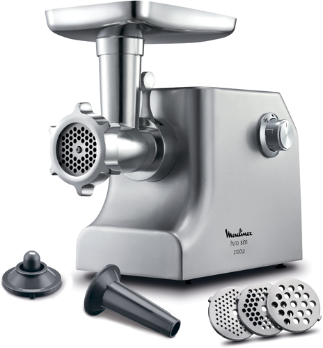 Французский производитель предлагает модель HV9 ME740, обладающую впечатляющей производительностью, равной пяти кг в минуту. Номинальная мощность в 1000 Ватт делает данную модель уникальной в сегменте бытовых электромясорубок. Также стоит отметить широкий набор различных насадок, благодаря чему можно шинковать овощи, резать колбасу и прочее.