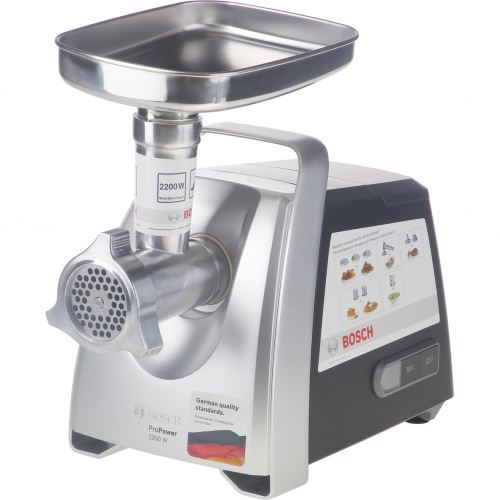 Мощная мясорубка с высокой производительностью и относительно более низкой стоимостью по сравнению с моделями конкурентов. Данная модель может не только перерабатывать мясо, но и натирать сыр, шинковать овощи и измельчать орехи. Благодаря набору дополнительных насадок электромясорубка может заменить электрокомбайн.