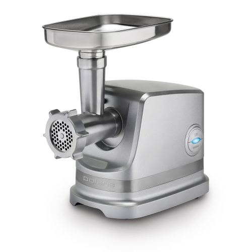 Модель Polaris обладает стильным внешним исполнением – серебристым пластиком, стилизованным под металл. Высокая максимальная мощность дает возможность рубить мясо в фарш со скоростью 3 килограмма в минуту. Также в комплекте можно найти набор различных насадок, хотя мясорубка относится к среднему ценовому сегменту.