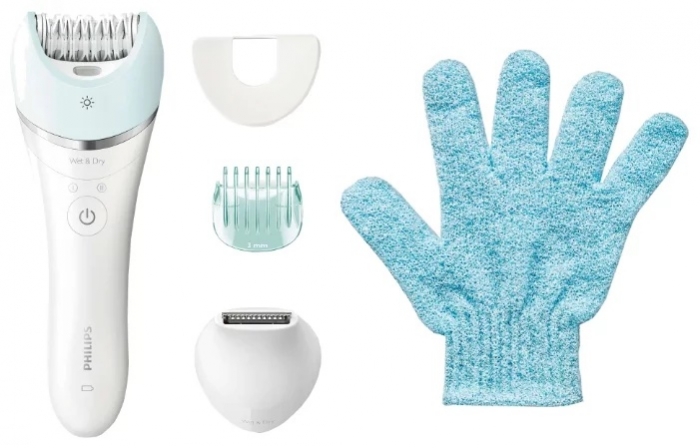 • комплектация включает триммер, насадку для бритья и насадку для эпиляции деликатных зон.