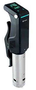 Погружная модель, которая является профессиональной и используется в заведениях общественного питания. Устройство оснащено нагревателем высокой эффективности с мощностью 1300 Вт. Поток жидкости достигает 16 литров в минуту, нагревается на 0,1°С за 60 сек., за счет чего можно легко приготовить блюда разной сложности.
