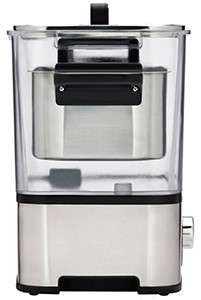 Устройство представляет собой водяную печь, которая оборудована чашей емкостью на 10 литров. Возможность регулировать температуру в пределах 20-99°С позволяет применять технику для готовки разных блюд. Имеется функция термоконтроля, предназначенная для настройки температуры с шагом до 0,5°С. Встроенный циркулятор жидкости обеспечивает равномерное распределение тепла между всеми пакетами.